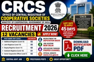 CRCS Recruitment 2026 is a great opportunity for government employees looking for deputation posts in central government offices. With multiple vacancies and high level positions, candidates should apply within the given deadline.