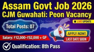 CJM Kamrup Metro Peon Recruitment 2026 provides an opportunity for candidates with Class VIII qualification to secure a government job in the judiciary establishment at Guwahati. Interested candidates should submit their applications before the deadline.
